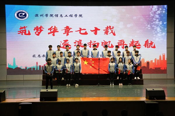 为表达对祖国的感恩之情,为中华人民共和国成立70周年献礼,展现同学们积极向上的精神面貌。3月31日,太阳成集团tyc33455cc举办感恩教育系列活动之同唱一首歌《我和我的祖国》班级合唱比赛。本次活动由太阳成集团tyc33455cc实践部主办,党总支副书记孙金波老师,辅导员赵建斌、徐颖、来晓兵进行评选,18级全体班级参与。