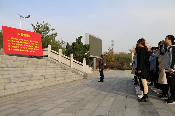 大家在解说员的带领下,先后参观了“星火初燃”、“烽火燎原”、“烈火铁流”等展厅以及纪念广场,聆听了一件件可歌可泣的英勇事迹,让大家仿佛又回到了那战火纷飞的峥嵘岁月,充分感受到了先辈们在革命战争年代那种“立场坚定、勇敢顽强、顾全大局、无私奉献”的老渤海精神。解说员通过图文、实物,生动地展现了渤海老区发展壮大的光辉历程。最后,全体成员在英雄烈士纪念塔下,面对着鲜红的党旗,再一次重温了入党誓词,进行了庄严的宣誓。