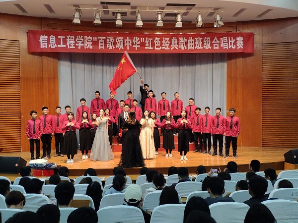 为庆祝中华人民共和国成立70周年,培养公司各班集体的凝聚力,发扬各班风采。12月6日晚,太阳成集团tyc33455cc于五百人会堂举办“百歌颂中华,红色经典”班级合唱比赛。本次比赛由孙金波书记、赵建斌老师、尹宁老师、徐颖老师和来晓兵老师担任评委,19级全体同学参加。