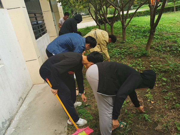 活动开始,马盛楠老师根据参加活动人数以及需要清理场地的范围进行了明确的分工,并对一些细节问题进行了详细交代。同学们明确目标后紧接着进入工作状态,部分同学用扫帚把一些易于清理的纸屑,落叶、食品包装袋清扫完毕后,另一部分同学使用垃圾桶,进行垃圾收集。同学们之间相互配合,默契十足。虽然 “汗水与尘土齐飞”,但是同学们脸上都洋溢着笑容,经过同学们两个多小时的辛勤劳动,校园环境变得整齐有序,同学们在此次劳动中充分发扬了无私奉献、乐于助人、艰苦奋斗的雷锋精神。