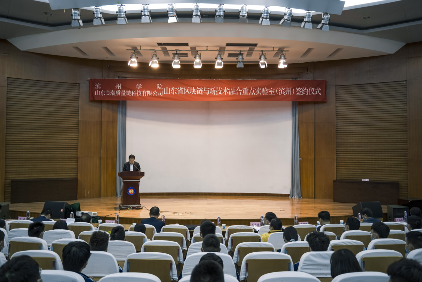 刘平在致辞中指出,滨州学院作为滨州市综合性高等学府,是科技创新和人才培养的摇篮,也是科研成果、高端人才集聚的高地。山东省区块链与新技术融合重点实验室将瞄准国家区块链战略需求,打造科技创新平台,构建产学研用融合的协同创新机制,开展区块链与人工智能、大数据、物联网等前沿技术融合应用研究,研究多学科交叉的组合型技术科学创新体系,推动区块链技术的集成应用,攻克一批关键核心技术,加快推动区块链技术和产业创新发展。他希望,能够与滨州学院在区块链人才培养、科研项目申报、区块链应用技术推广等方面建立全方位、多层次的合作关系,搭建资源共享、互利双赢的合作平台。