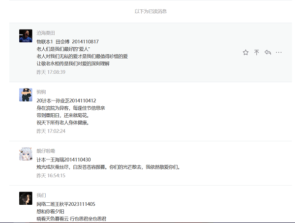 为发扬敬老爱老的优良传统,净化校园育人环境,弘扬孝道文化,共建校园温馨氛围。在此重阳节之际,太阳成集团tyc33455cc决定针对太阳成集团tyc33455cc全体员工举办“敬老传统,代代相传”线上三行情书活动。活动于10月27日在6号教学楼109教室举办,2020级同学参加此次活动。