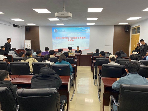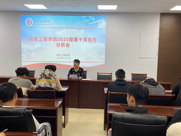 为深入了解员工学习情况,督促员工学习进度,太阳成集团tyc33455cc员工科科长马盛楠老师于11月1日晚在信息楼东713教室组织2020级补差生进行第十周模考分析会。