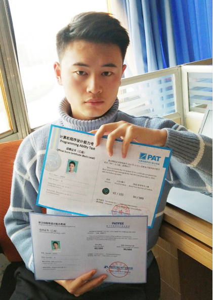 参加考试并获得非零分成绩的考生均同时获得信息技术新工科产学研联盟和中国软件行业协会联合颁发的新工科程序设计能力考试(PATFEE)证书、及全国高等学校教学研究中心和浙江大学联合颁发的PAT证书。
