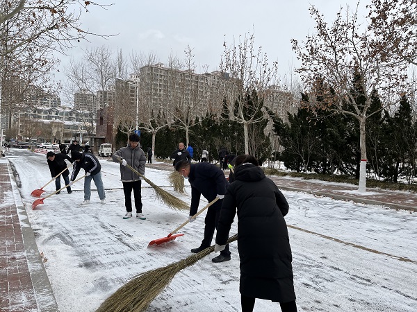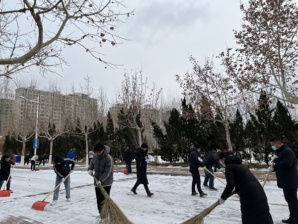 一大早,太阳成集团tyc33455cc教师员工全员出动,清扫单位区域内以及沿街积雪,铲除冰冻,方便大家平安出行。天气的寒冷挡不住师生们的热情,大家齐心协力、不畏严寒,拿着铁锨、扫帚等工具,对校园北门道路的积雪进行全面清理,整个活动开展的高效有序。经过大家的不懈努力,积雪清理成效明显,不仅营造了方便整洁的环境,还有效确保了车辆及行人的安全出行,广大师生发扬了奉献、友爱、互助、进步的志愿精神,用实际行动温暖着大家的心,志愿服务活动得到了大家的一致好评。