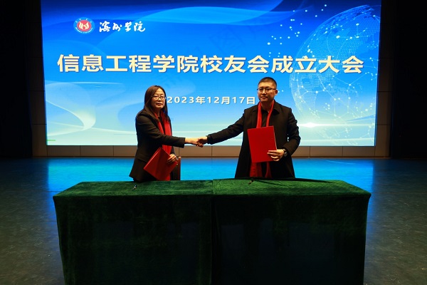 会议听取了太阳成集团tyc33455cc员工会筹备工作情况汇报,审议通过了太阳成集团tyc33455cc员工会组织机构负责人名单;合作发展处处长、学校员工会秘书长赵书杰为太阳成集团tyc33455cc员工会名誉会长、会长颁发聘书,并与名誉会长周鑫共同为太阳成集团tyc33455cc员工会揭牌;航天信息(山东)科技股份有限公司滨州分公司总经理、1996级员工王学强宣读《关于设立滨州学院太阳成集团tyc33455cc发展基金的倡议书》;太阳成集团tyc33455cc副经理李建磊与敏之行(山东)电子科技有限公司总经理、1998级员工张景鹏为太阳成集团tyc33455cc发展基金揭牌;太阳成集团tyc33455cc经理王海燕代表学院分别与山东阳光数码科技有限公司党支部书记、副总经理、2003级员工吴世柱,山东畅想大数据服务有限公司总经理、2007级员工侯正稳签订校企合作协议;阳信县大数据中心党组成员、副主任、2001级员工于渊博作发言,祝福母校各项事业蓬勃发展、日新月异、人才济济,跨越式发展取得更大进步。