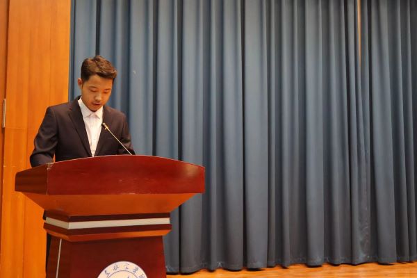 考研指导教师代表路来智在发言中表示将严格按照学院要求,关心员工、服务员工、精准指导,并鼓励同学们要勇于追求梦想,克服困难,坚持到底。