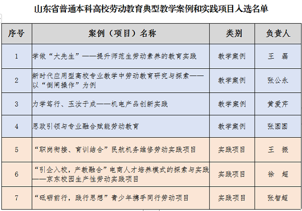 公司1项目入选山东省普通本科高校劳动教育典型实践项目