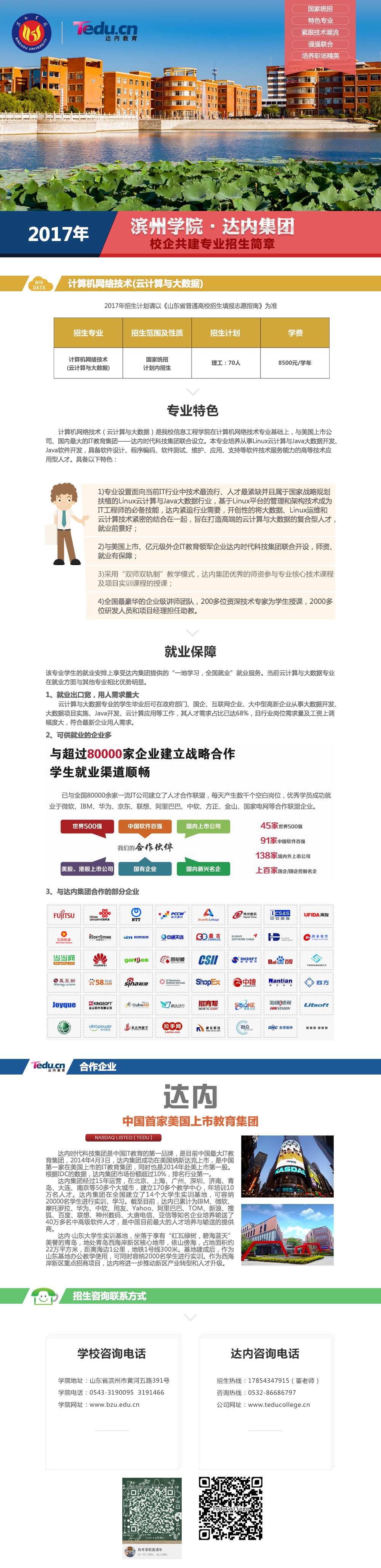 滨州学院·达内集团2017年校企共建专业招生简章计算机网络技术(云计算与大数据)2017年招生计划请以《山东省...