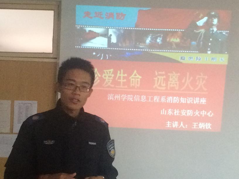 2015年11月3日下午,山东社安防火中心王炳钦教官来我系给全体教工作消防知识讲座。讲座的主题是《珍爱生命...